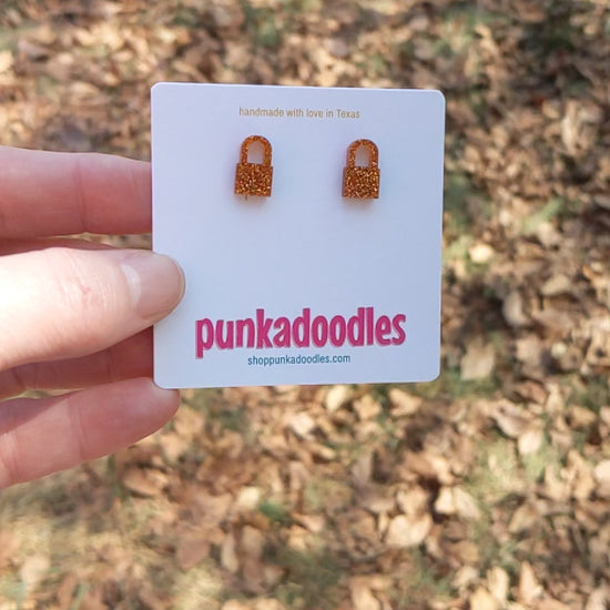 Orange Glitter Lock Earrings